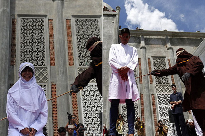 یک دختر جوان و دو پسر به خاطر داشتن رابطه قبل از ازدواج در اندونزی به صورت ملاعام شلاق خوردند.