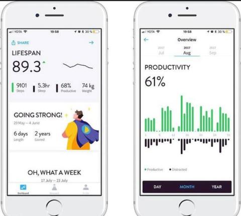 این اپلیکیشن از اطلاعات گجت های پوشیدنی که سلامت فرد را رصد می کنند برای پیش بینی طول عمر او استفاده می کند. اگر فرد عوامل موثر بر سلامتی و بهداشتی را رعایت نکند این پیش بینی کاهش می یابد. به این ترتیب به کاربر انگیزه می دهد تا زندگی سالمتری را ادامه دهد.