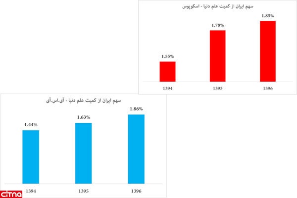 سهم ایران از کمیت تولید علم دنیا نیز از حدود ۱.۶ درصد در سال ۱۳۹۴ به حدود ۱.۹ درصد در سال ۱۳۹۶ رسیده است. در سال ۱۳۹۵ نیز سهم کمیت تولید علم کشور از کل کمیت علم دنیا حدود ۱.۸ درصد بود که تقریبا حدود ۰.۱ درصد به سهم کمیت تولید علم ایران در سال گذشته افزوده شده است.