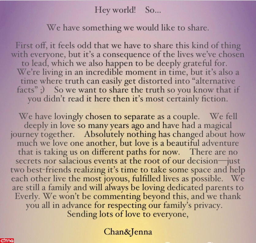 به گزارش ایران آرت، این دو بازیگر با انتشار یک متن در توییتر، خبر جداییشان را رسماً اعلام کردند.