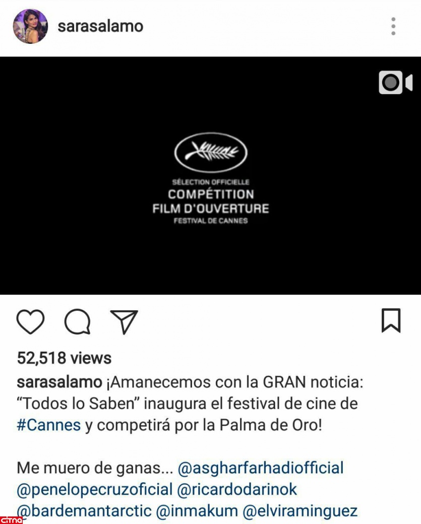 در همین راستا سارا سالامو ،نامزد ایسکو، ستاره اسپانیایی تیم رئال مادرید در جدیدترین پست خود در اینستاگرام، با انتشار تیزر این فیلم و منشن اصغر فرهادی، برای فیلم تبلیغ کرده است.