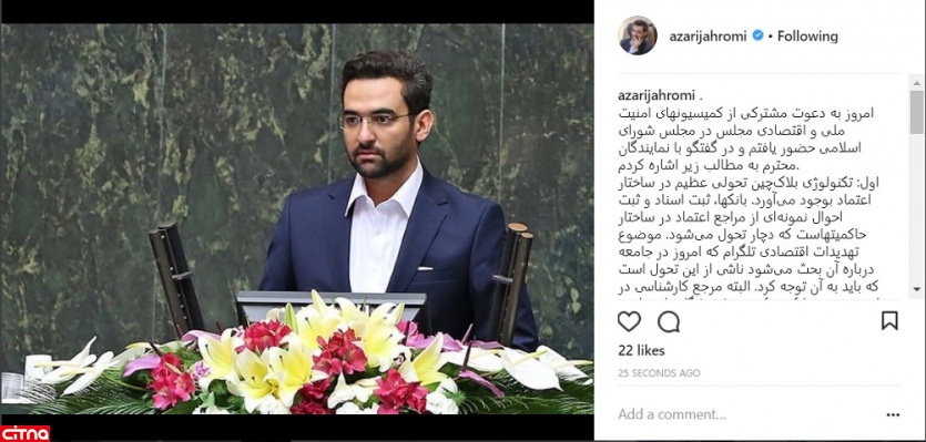 به گزارش سیتنا، مهندس آذری جهرمی در پستی اینستاگرامی نوشت: