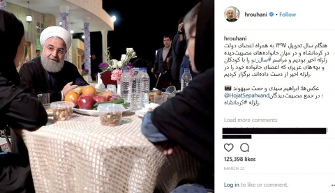 به گزارش سیتنا، آخرین پست صفحه اینستاگرام حسن روحانی عکسهایی متعلق به 2 فروردین است، که در آن به هنگام سال تحویل 1397 و بازدید حسن روحانی از مناطق زلزله زده کرمانشاه اشاره دارد، کاربران با مراجعه به آن در زیر این پست لحظه به لحظه کامنت نوشته و از این راه نارضایتی خود را ابراز می کنند.