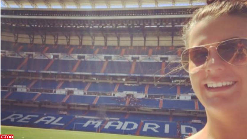 در این عکس که مربوط به سال 2016 است، لوسی در ورزشگاه اختصاصی رئال، سانتیاگو برنابئو، دیده می شود و زیر این عکس هم نوشته شده:" فکر می کنم ورزشگاه بدی نیست."