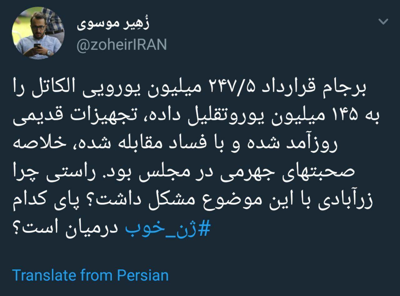 آیا نمایندگان مجلس از کاهش 100 میلیون یورویی قرارداد آلکاتل ناراضیاند؟