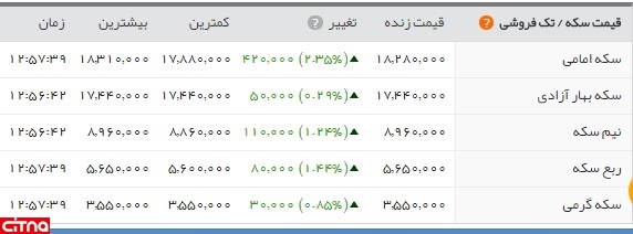 بازار سکه هم امروز با افزایش قیمت مواجه شد. هر قطعه سکه بهار آزادی طرح امامی با 42 هزار تومان افزایش به یک میلیون و 823 هزار تومان رسید. نیم سکه با 11 هزار تومان افزایش 839 هزار تومان و ربع سکه هم با 8 هزار تومان افزایش به 561 هزار تومان رسید.