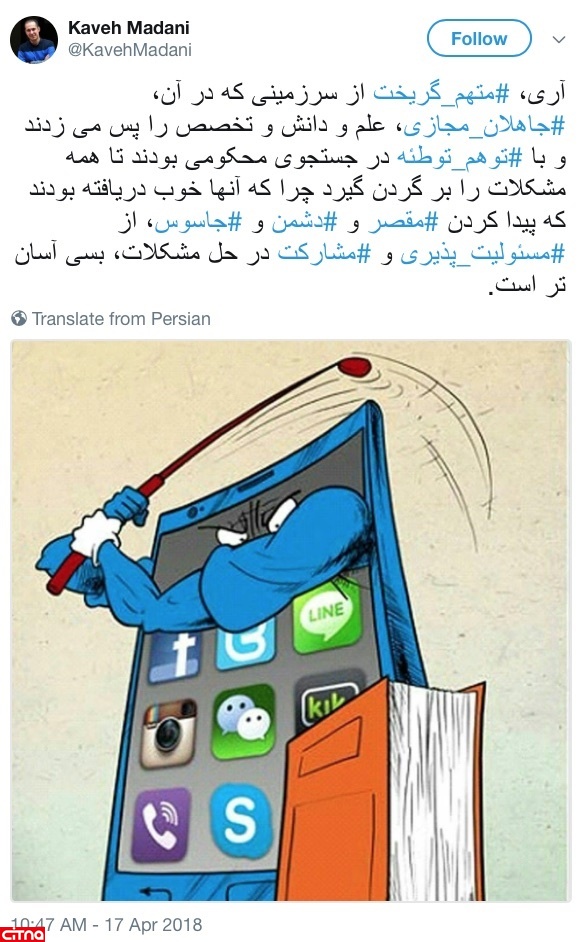 به گزارش سیتنا به نقل از خبرگزاری ها، در توییت کاوه مدنی، استاد امپریال کالج لندن که به هشتگ #متهم_گریخت تاخته، آمده است: