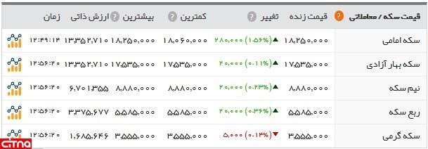 به گزارش خبرآنلاین، قیمت هر قطعه سکه امامی امروز در بازار تهران 2800 تومان افزایش یافت. سکه تمام بهار آزادی، نیمسکه و ربعسکه نیز با افزایش 2 هزار تومانی روبه رو شد.
