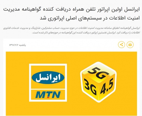 به دنبال ادعای ایرانسل مبنی بر تنها اپراتور تلفن همراه کشور که موفق به دریافت گواهینامه نظام امنیت اطلاعات (نما) شده است و انتشار اخباری مبنی بر اینکه همراه اول و رایتل به ترتیب 4 و 2 سال قبل موفق به دریافت این گواهینامه شدند، ایرانسل خبرش را اصلاح کرد.