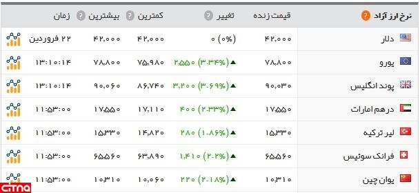 در بازار ارز اما قیمت یورو 255 تومان، پوند 320 تومان، درهم امارات 40 تومان، لیر ترکیه 28 تومان و یوان 22 تومان بالا رفت.