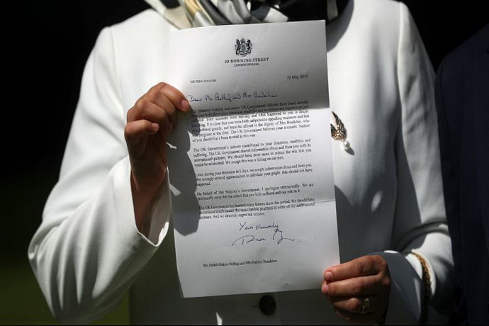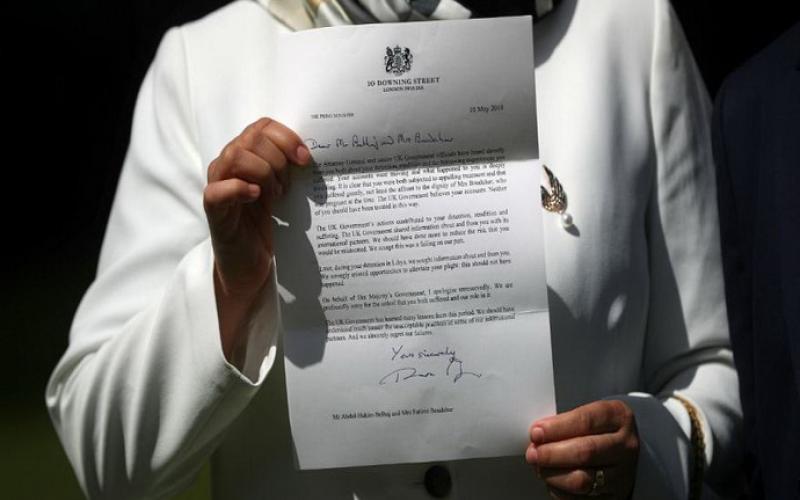 نخست وزیر بریتانیا با ارسال نامه ای رسما از یک مخالف حکومت سابق لیبی و همسرش عذرخواهی کرد.