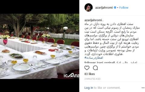سنت افطاری دادن به روزه داران در ماه مبارک رمضان، از رسوم نیکی است که در بین مردم ما رایج است. اگرچه ممکن است نیت سازمانهای دولتی از برگزاری مراسمهای افطاری ترویج این سنت حسنه باشد، اما برای رعایت هزینه کرد از بیت المال و حفظ حقوق مردم، خواستم تا از برگزاری چنین مراسمهایی از محل بودجه عمومی وزارت ارتباطات و فناوری اطلاعات خودداری گردد.