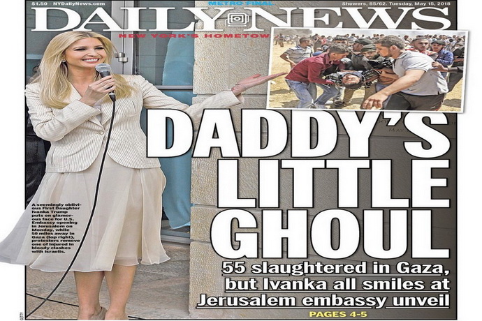 به گزارش تارنمای روزنامه هافینگتن پست، نیویورک دیلی نیوز در اشاره به لبخندهایی که ایوانکا ترامپ در مراسم بازگشایی سفارت آمریکا در بیت المقدس به لب داشت در همان حال که اعتراضات به این اقدام در غزه به خاک و خون کشیده شده بود، لقب «شیطان کوچولوی بابا» را به او داد.