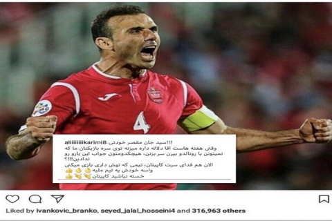کاپیتان پست علی کریمی علیه کیروش را لایک کرد!