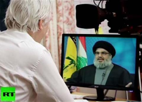 بنیانگذار جنجالی "ویکیلیکس" که هماکنون مجری برنامهای در تلویزیون دولتی روسیه شده است در اولین برنامهی خود سید حسن نصرالله را به عنوان مهمان دعوت کرد تا با او به گفتوگو بنشیند.