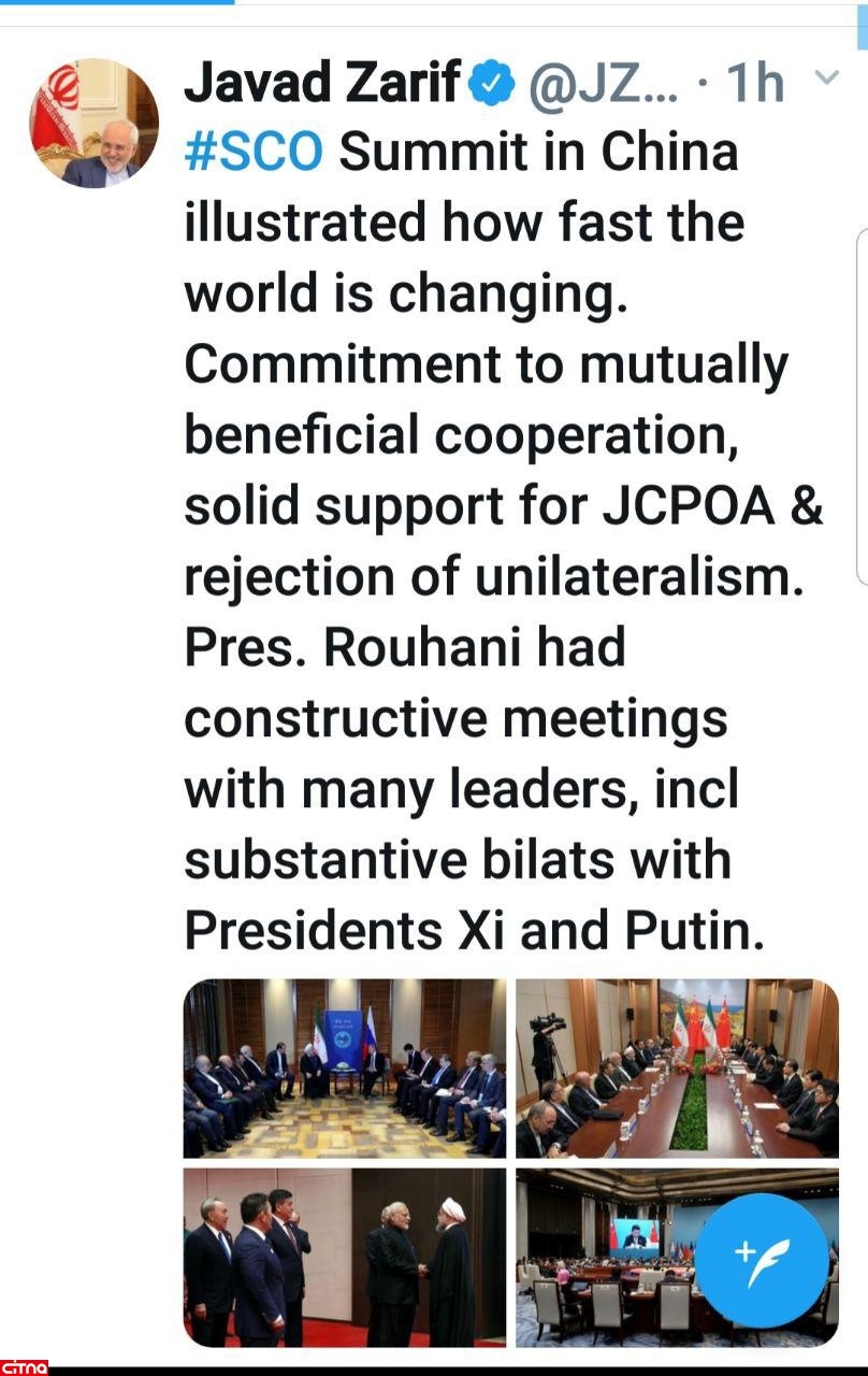 اجلاس سران سازمان همکاری های شانگهای در چین نشان داد که جهان با چه سرعتی در حال تغییر است. تعهد به همکاری های سودمند دوجانبه، حمایت قاطع از برجام و رد یکجانبه گرایی. رئیس جمهور روحانی هم دیدارهای سازنده با بسیاری از رهبران از جمله ملاقات های دو جانبه پرمحتوا با روسای جمهوری چین و روسیه داشت.