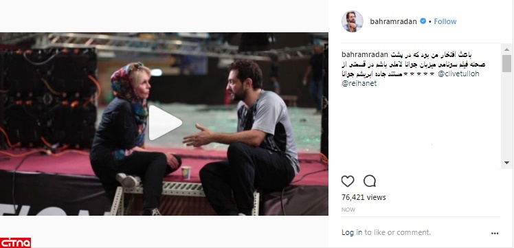 به گزارش سرویس وبگردی سیتنا، بهرام رادان با انتشار یک فیلم در اینستاگرام، از دیدار با جوانا لاملی، بازیگر سرشناس بریتانیایی خبر داد که در حال ساخت قسمت مربوط به ایران در مستند «جاده ابریشم جوانا» است.