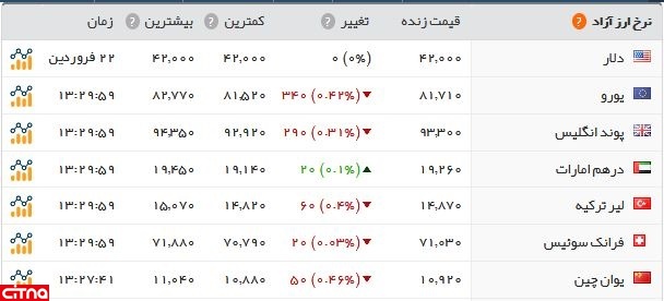 در بازار ارز امام روند قیمتها تا حدی کاهش بود. نرخ یورو 34 تومان، پوند 29 تومان، لیر ترکیه 6 تومان و یوان چین 5 تومان کاهش یافت.