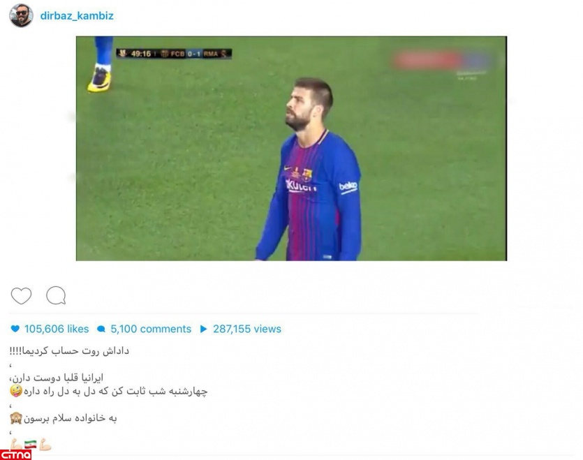 کامبیز دیرباز بازیگر سینما و تلویزیون هم در پستی اینستاگرامی اشاره ای طنز به این موضوع داشته و از بازیکن تیم ملی اسپانیا درخواست جالبی داشته است.