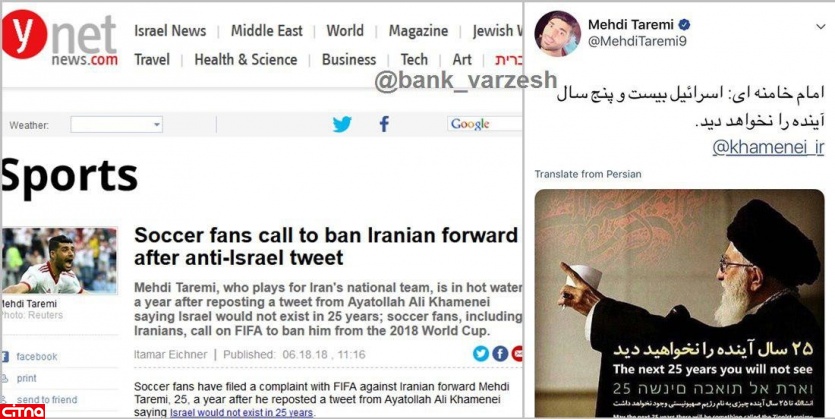 هواداران فوتبال شکایتی را علیه طارمی مهاجم 25 ساله ایران به فیفا ارائه کردهاند. این در حالی است که طارمی در توییت خود به نقل از آیت الله خامنهای، رهبر جمهوری اسلامی ایران نوشته است که "اسرائیل تا 25 سال آینده در دنیا وجود نخواهد داشت".