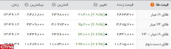 هر گرم طلای 18 عیار نیز 246 هزار تومان قیمت خورد.