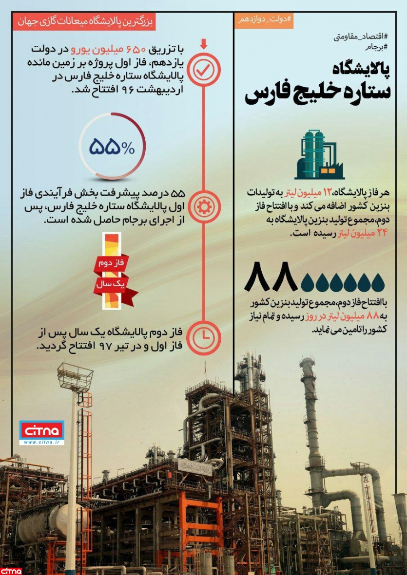 اینفوگرافی/ با افتتاح فاز دوم پالایشگاه "ستاره خلیج فارس"، در تولید بنزین به خودکفایی رسیدیم
