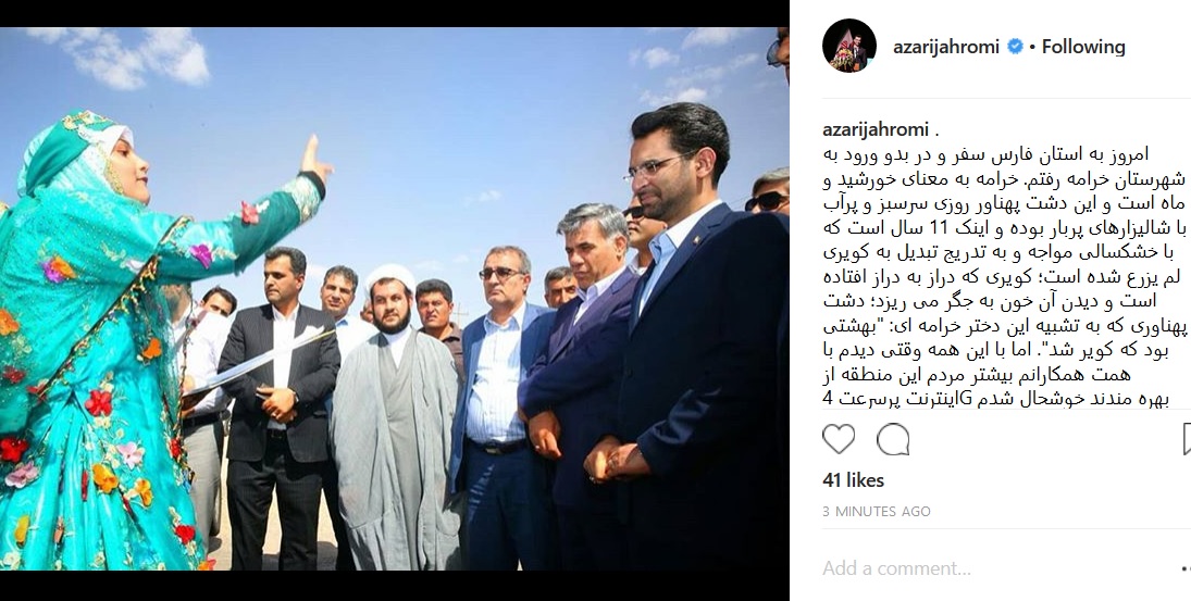 به گزارش سیتنا، مهندس آذری جهرمی، وزیر ارتباطات و فناوری اطلاعات دقایقی قبل در اینستاگرامش نوشت: