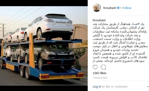 رئیس جمهور پس از دریافت گزارش وزارتخانههای صنعت، معدن و تجارت، اطلاعات، امور اقتصادی و دارایی و نیز بازرسی ریاست جمهوری درباره وقوع تخلف در واردات و فروش خودروهای خارجی، ضمن دستورهای جدید به سه وزارتخانه و معاون حقوقی ریاست جمهوری؛ از رئیس قوه قضائیه خواست ترتیبی اتخاذ نمایند تا با دقت و سرعت و خارج از نوبت به این پرونده رسیدگی شود.