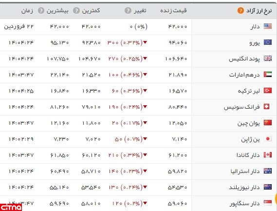 قیمت هر یورو نیز با 30 تومان کاهش به 9406 تومان رسید. هر پوند انگلیس نیز 10 هزار و 664 تومان قیمت خورد. کاهش اندک قیمت ها در بازار ارز به جشم می خورد.