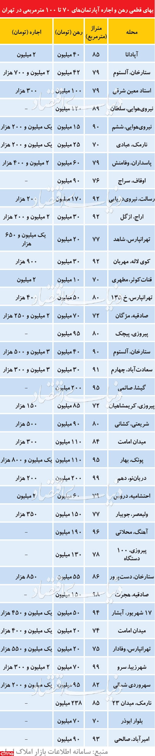 قیمت آپارتمان اجارهای در پایتخت (+جدول قیمت)