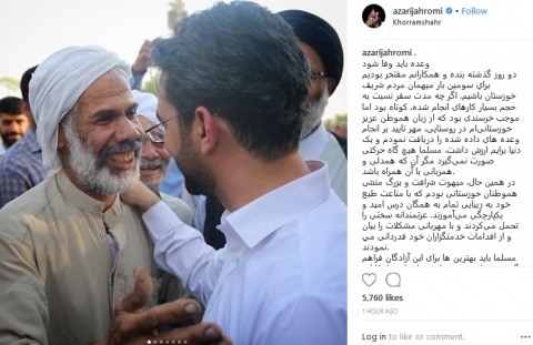 به گزارش سیتنا، مهندس آذری جهرمی با توضیح سفرش به استان خوزستان، در اینستاگرامش نوشت: