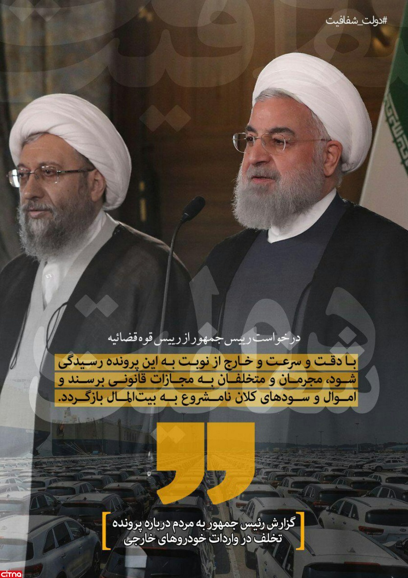 استوری های جدید اینستاگرام روحانی دربارهی شفافیت و دستورات وی برای رسیدگی به فساد واردات خودرو منتشر شد.