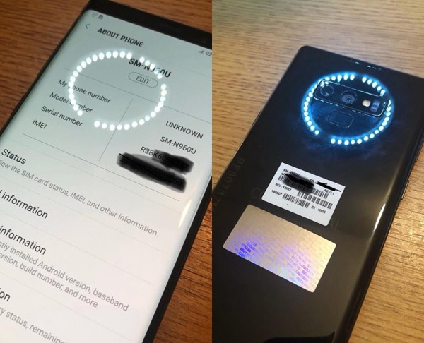 در تازهترین خبرها، تصاویر زنده جدیدی از این گوشی هوشمند گرفته شده است که مشخصات ظاهری آن را برای ما به نمایش میگذارد. یکی از این عکسها پشت دستگاه را نشان میدهد که جایگاه دوربین دوگانه و حسگر اقر انگشت در آن مشخص است و دیگری هم جلوی Galaxy Note 9 را در منوی تنظیمات به تصویر میکشد.