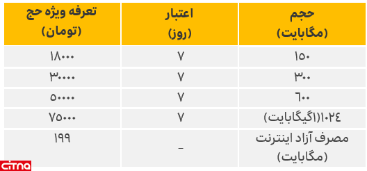 به گزارش سیتنا به نقل از روابط عمومی ایرانسل، امسال برای افرادی که قصد دارند به حج مشرف شوند روزانه 10 مگابایت اینترنت رایگان روزانه و در کنار آن بستههای 150 تا یک گیگابایتی نیز به صورت ویژه ارائه شده است.