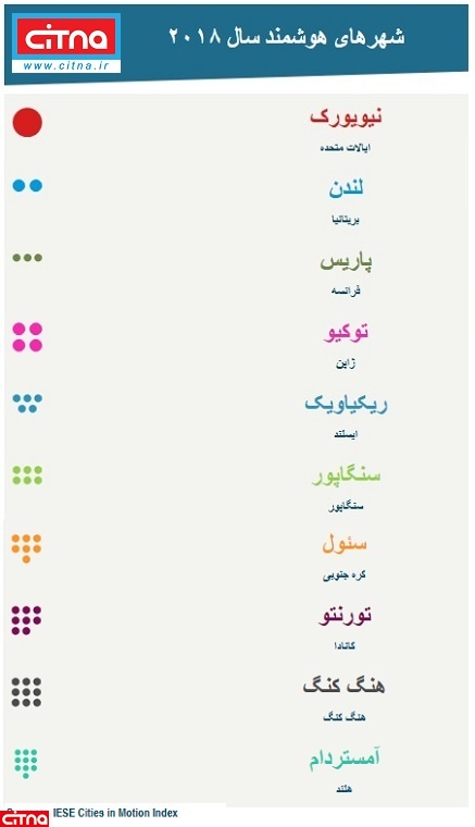 شهرهای هوشمند جهان براساس شاخص پویایی شهرها (IESE Cities in Motion Index) متعلق به پژوهشگاه آیایاسای انتخاب و اعلام شدند. نیویورک برای دومین سال پیاپی در صدر این فهرست قرار گرفت.