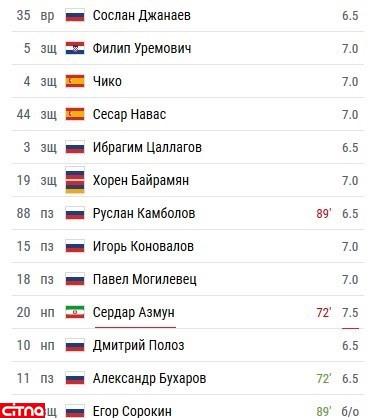 سردار آزمون بهترین بازیکن تیمش مقابل کراسنودار شد.