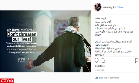 هشدار به ترامپ قمارباز در اینستاگرام سردار سلیمانی