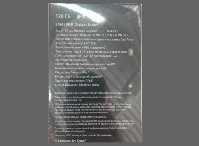 به گزارش سیتنا، به نظر می‌رسد، روز گذشته (جمعه 12 مردادماه) روز لو رفتن ویژگی‌های پرچمدار جدید سامسونگ بود چرا که پس از انتشار تصادفی تیزر تبلیغاتی Galaxy Note 9 توسط کانال YouTube نیوزلندی شرکت سامسونگ، تصویری واقعی هم از جعبه فروش این گوشی فاش شد که روی آن شماره‌ها و ویژگی‌های جزئی این دستگاه را نشان می‌دهد. این تصویر واقعی مربوط به جعبه فروش این دستگاه در روسیه است. نوشته‌های روی این جعبه شامل قابلیت‌هایی می‌شود که ما تمایل به دانستن آن‌ها هستیم.