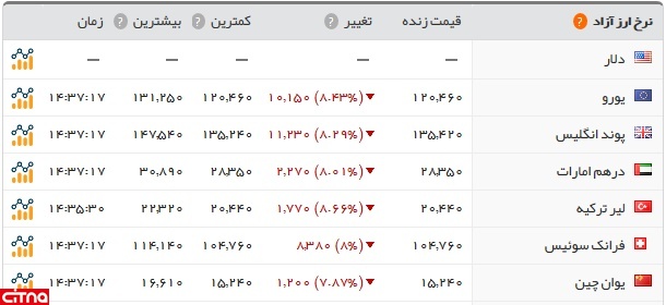 از سوی دیگر، در بازار ارز قیمت یورو 1050 تومان، پوند 1123 تومان، درهم امارات 227 تومان، لیر ترکیه 177 تومان و یوان چین 120 تومان کاهش قیمت داشت.