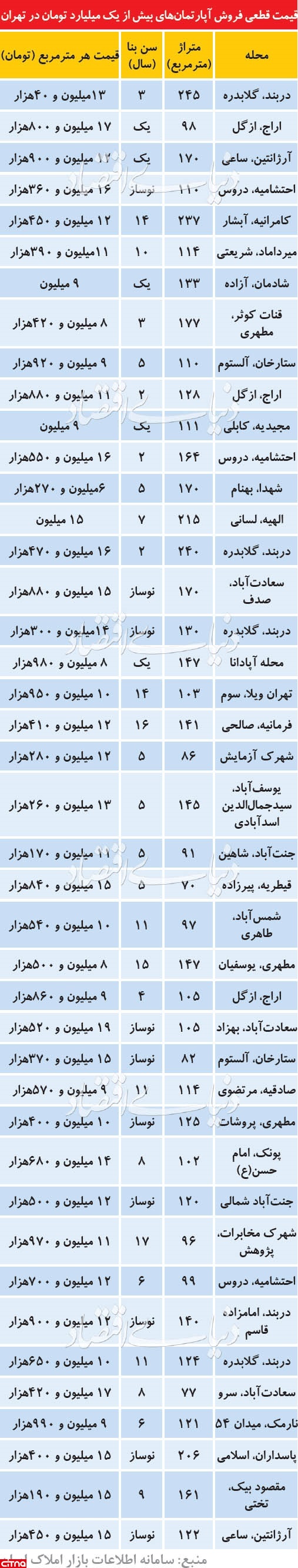 قیمتهای نجومی برای آپارتمانهای تهرانی (+لیست قیمت)
