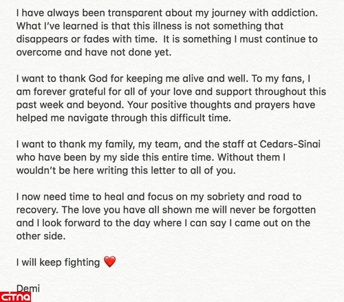 من خدا را شکر می کنم که زنده ام و حالم بهتر از قبل شده است. از تمام طرفدارانم به خاطر حمایت ها و عشق هایی که در هفته های اخیر به من داشتند سپاسگزارم. دعاها و انرژی های مثبت شما بود که باعث شد بتوانم این شرایط سخت را تحمل کنم.