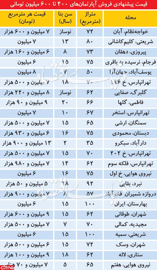 خبرهای خوب برای مشتریان آپارتمانهای ۴۰۰ تا ۶۰۰ میلیونی درپایتخت (+جدول قیمت)