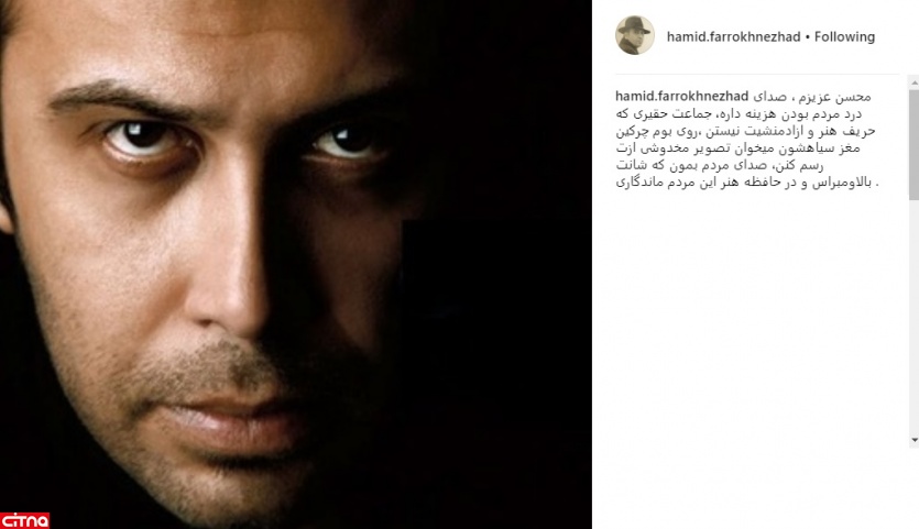 حمایت اینستاگرامی حمید فرخنژاد در واکنش به تهدید محسن چاوشی