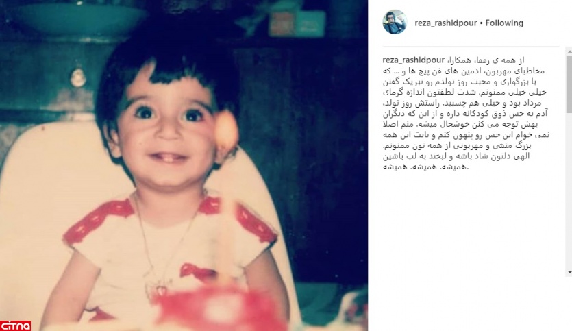 پست رضا رشیدپور به مناسبت سالروز تولدش