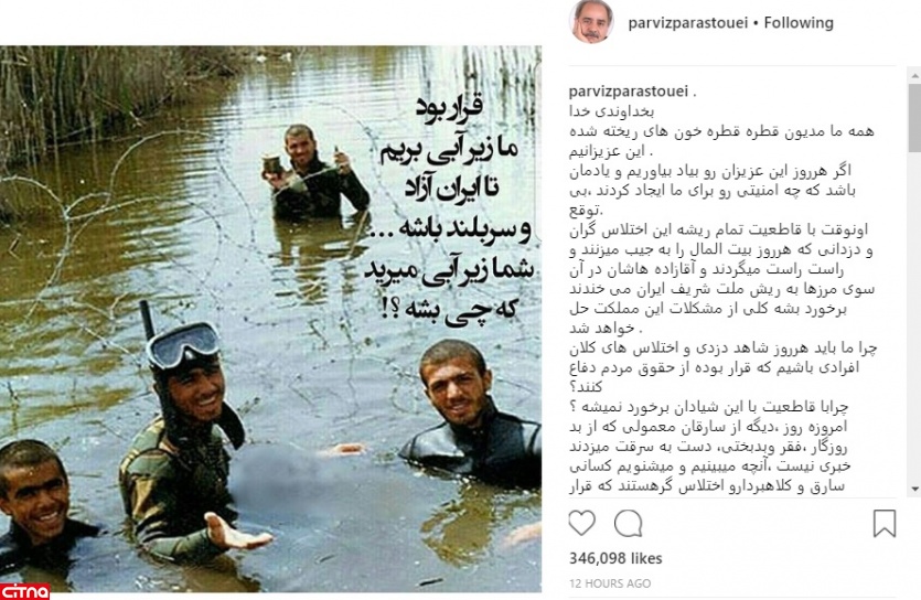 به گزارش سرویس وبگردی سیتنا، پرویز پرستویی با انتشار تصویری از چند رزمنده غواص در اینستاگرام، نوشت: