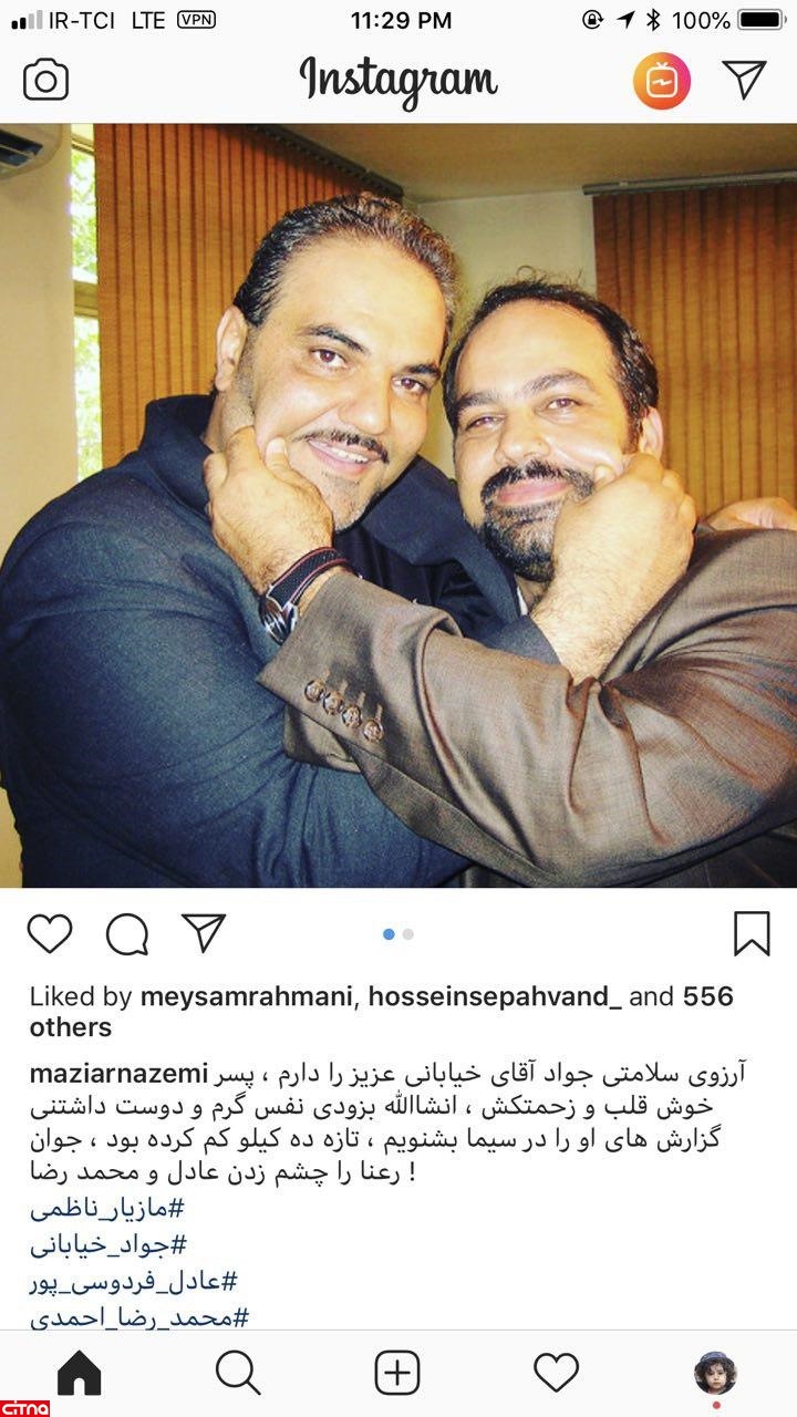 ناظمی در پست خود به شوخی گفت که عادل فردوسی پور و محمدرضا احمدی، جواد خیابانی را چشم زده اند!