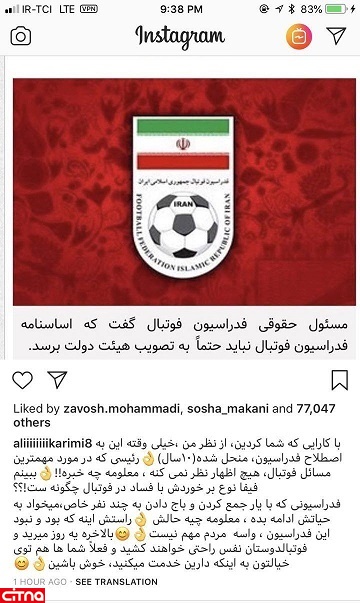 حمله اینستاگرامی علی کریمی به فدراسیون فوتبال