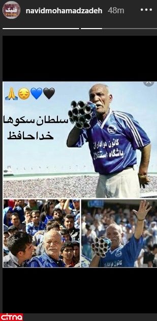 نوید محمدزاده با انتشار تصویری از سهراب بوقی، بوقچی سرشناس باشگاه فوتبال استقلال که به تازگی دارفانی را وداع گفت در اینستاگرام، با او خداحافظی کرد.