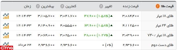 از سوی دیگر، قیمت طلا در بازار با افزایش 4 هزار و 790 تومانی مواجه شد؛ به طوری که با قیمت 308 هزار و 440 تومان به فروش رفت.
