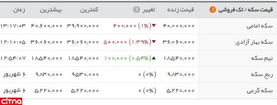 قیمت سکه بر ۴.۰۰۰.۰۰۰ تثبیت شد/کاهش اندک بهای ارزها